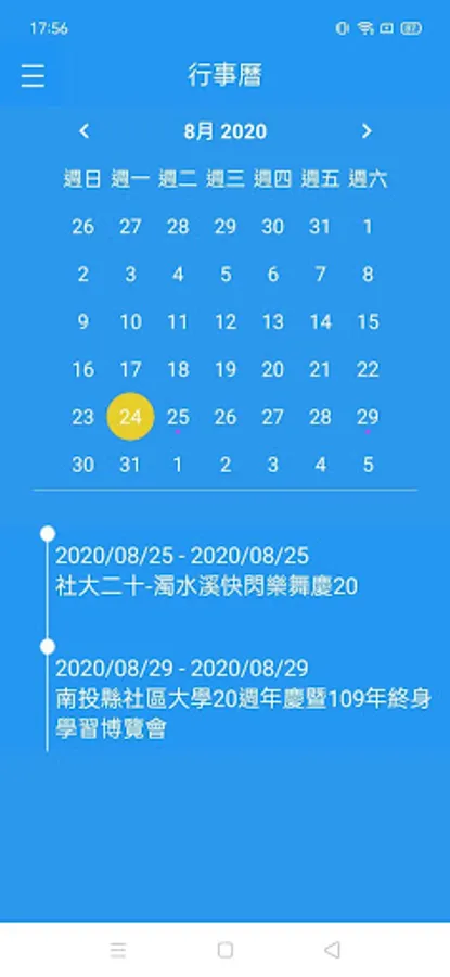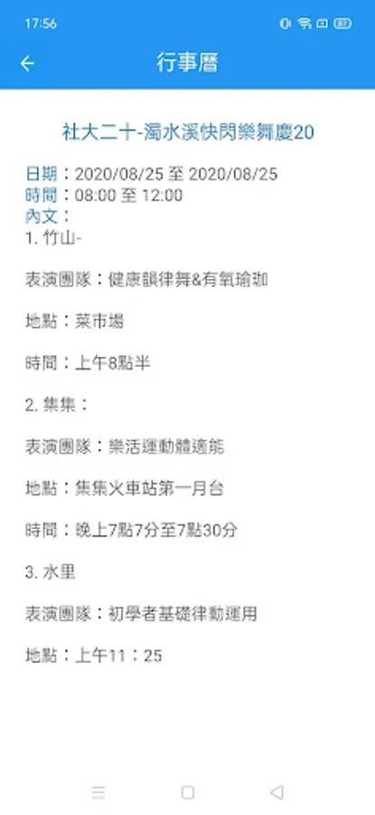 2. 行事曆:查詢本縣三所社區大學記事項目。