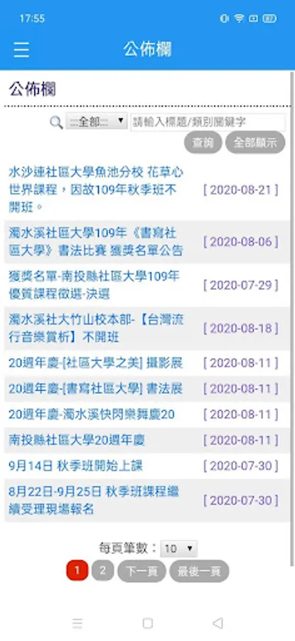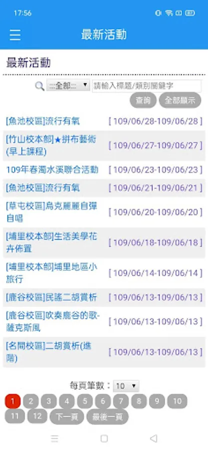 3. 課程查詢:查詢本縣三所社區大學班季、課程內容及課程進度表。