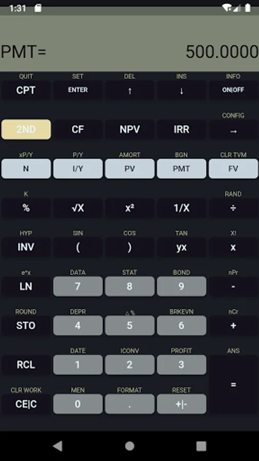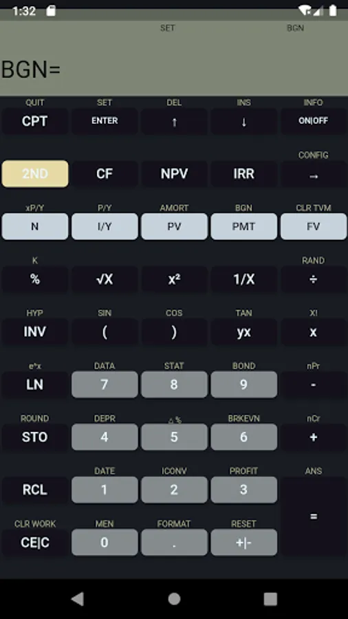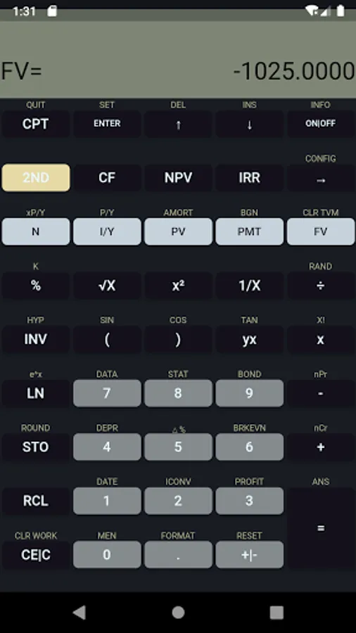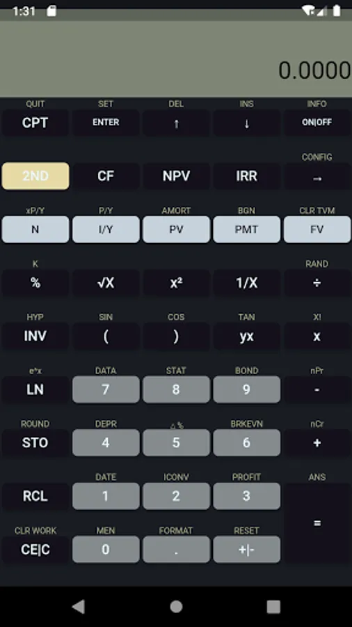 Full-feature emulates Texas Instruments BA II Plus Professional Financial Calculator for Android. Built with identical algorithms and formulas of original, it provides exact same capabilities and operation sequences, and beyond with better user experience.