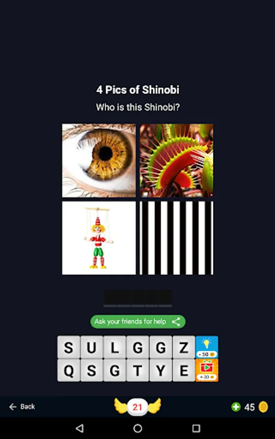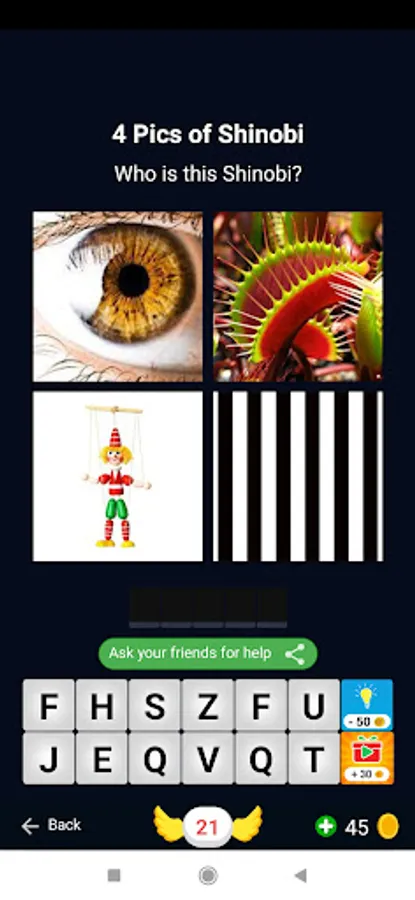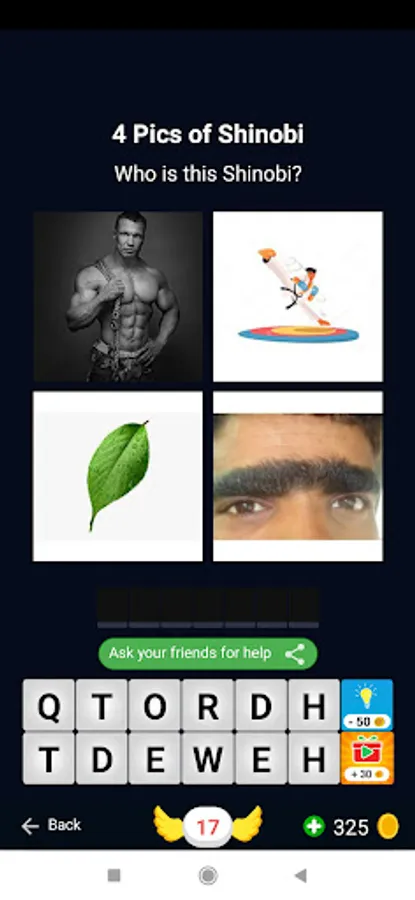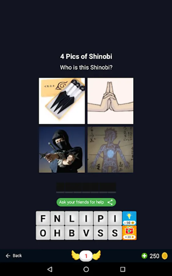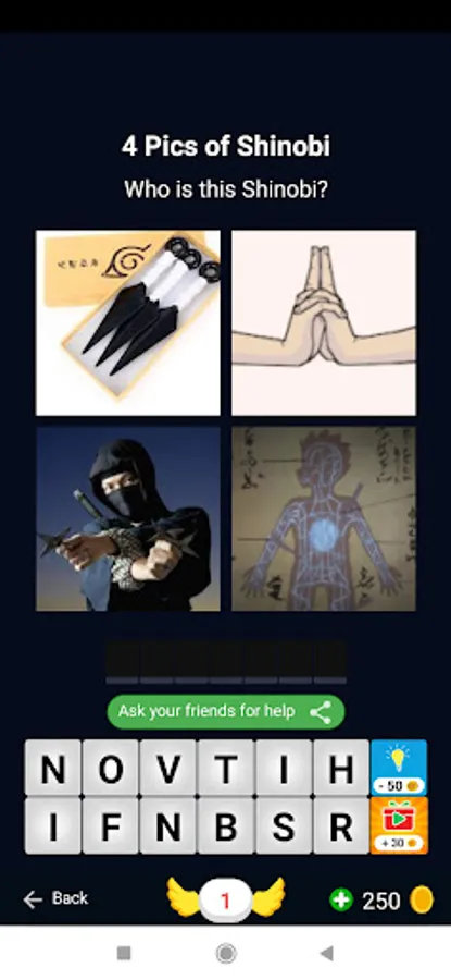 There are 4 pictures in the game, one picture is one clue for solving the Shinobi. The game "4 pics shinobi" is already played by all the fans.