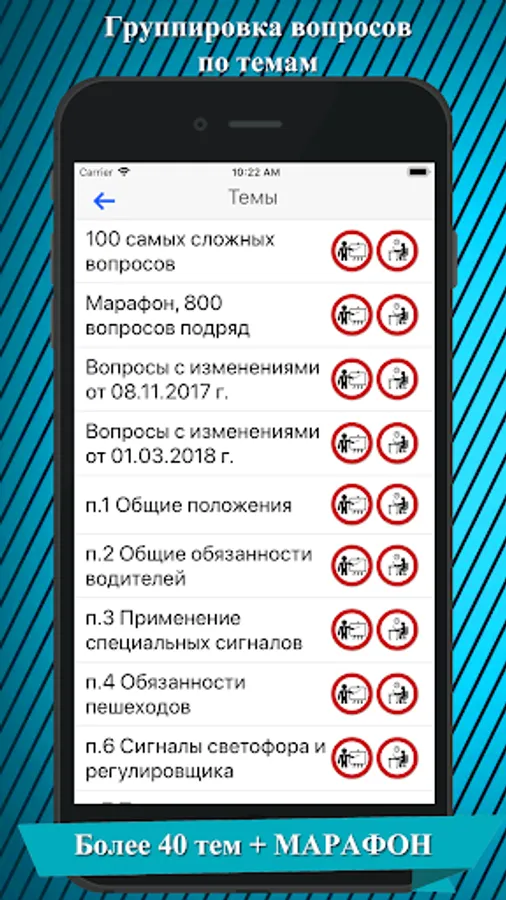 - Modes "Marathon 800 questions" and "100 most difficult questions"