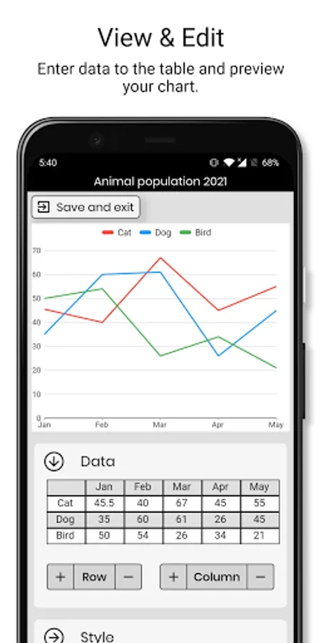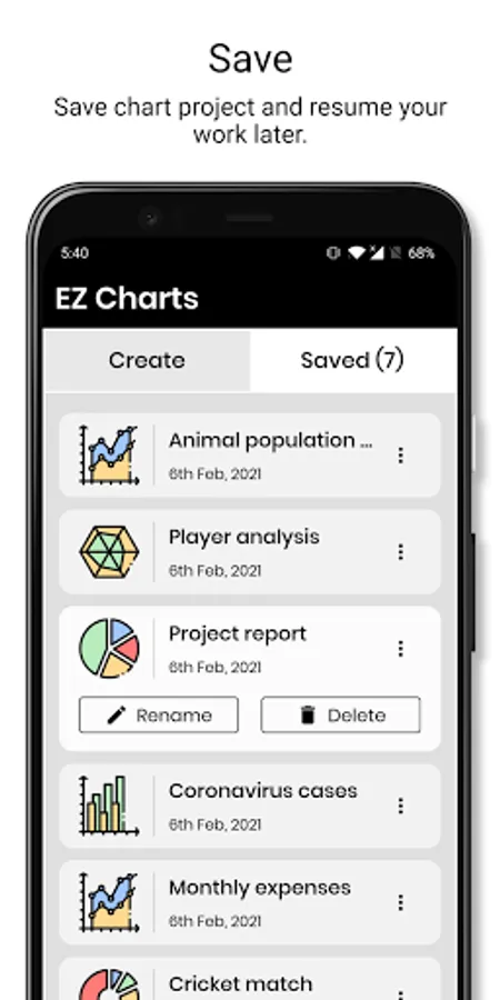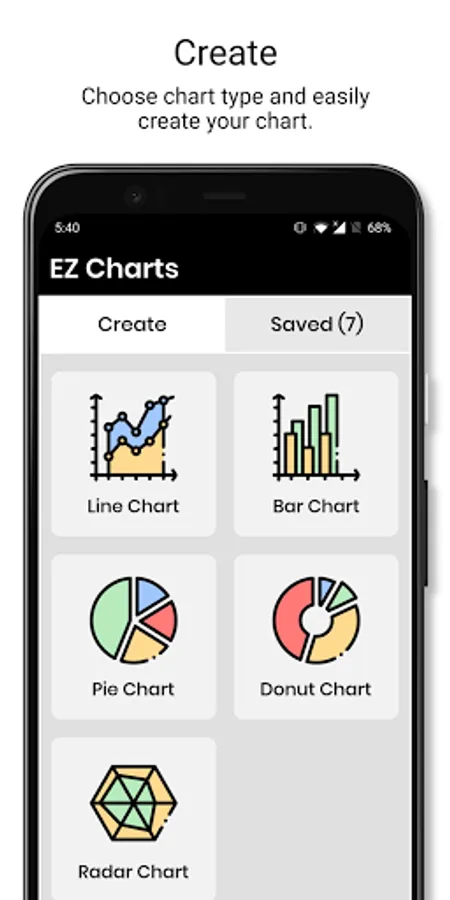 ◼ You can create Line chart, Bar chart, Pie chart, Donut chart and Radar chart.