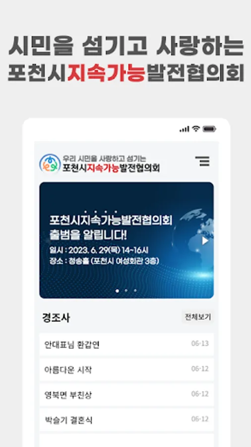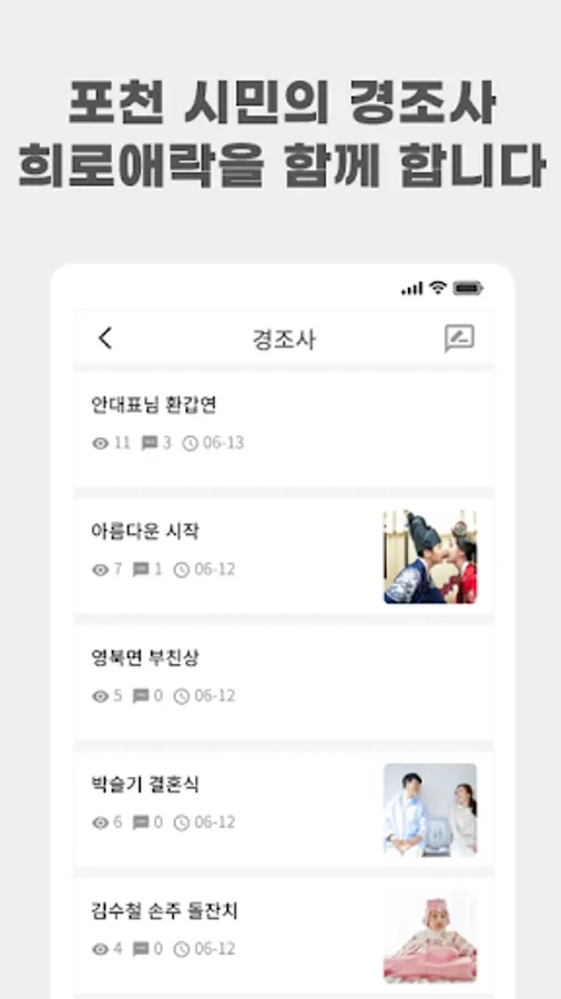It is a service for congratulatory and condolence sharing and citizen love rooms for Pocheon citizens.