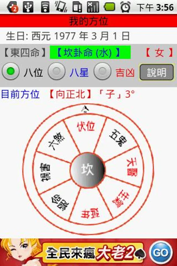 Financial position compass keep you up to day orientation Fortuna enrich your treasury, daily Taboo, ghosts reminder lets you stay out of trouble, Lunar, Lunar date, specific date throttle, so you are in the modern busy life, but also to understand the nature and the wisdom of our ancestors, calculated according to the reference birthdates bone mass, provide your fleeting fortune, life Gua and orientation Lunar calculated according to birth, let your more fully grasp their own orientation, through five elements, allowing you to own color, character a deeper understanding of the tire footprint God to let you know the intentions of the ancients.