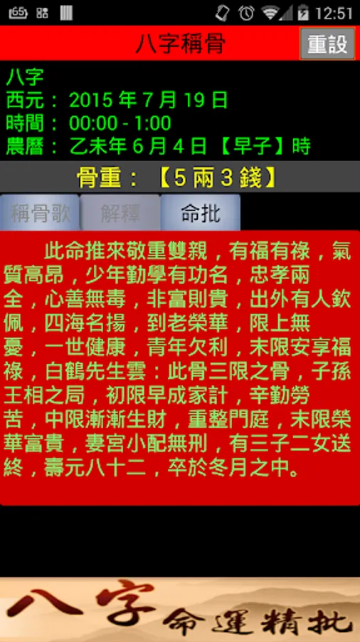 17. [weighing] character: according to the hour of birth, calculate bone mass, provide reference explanation, ordered batches