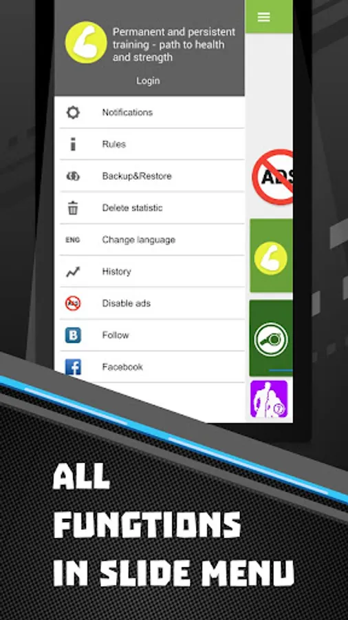 - fast statistics (your current average level of push-ups, current program, status and medals)