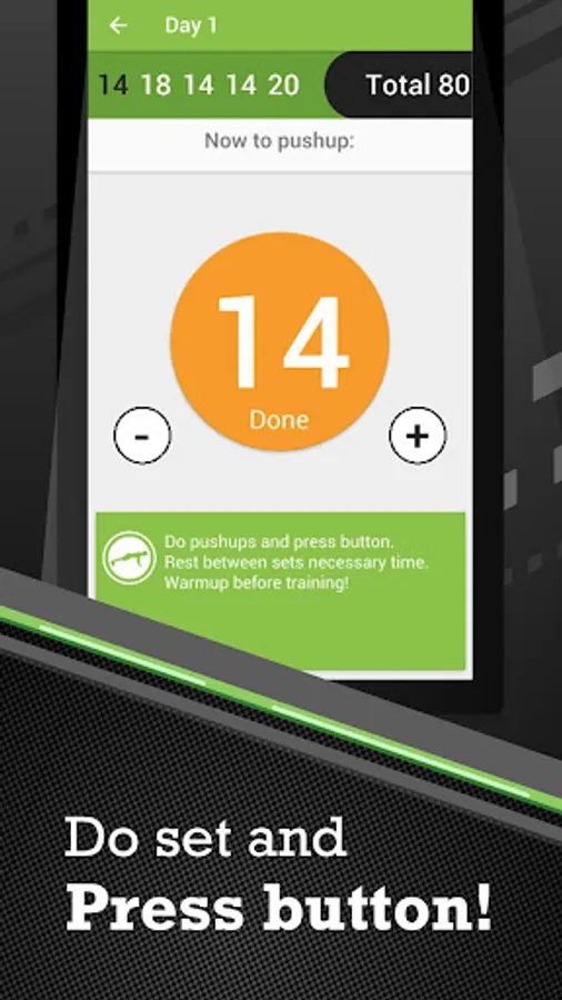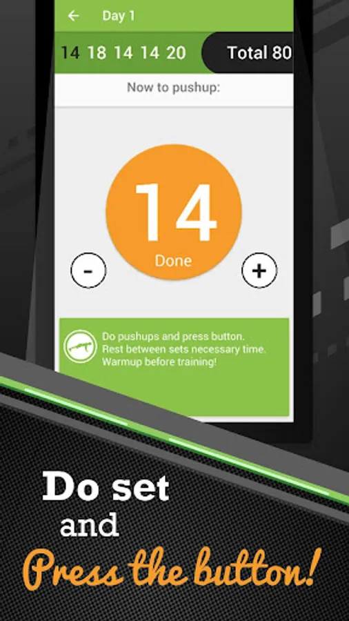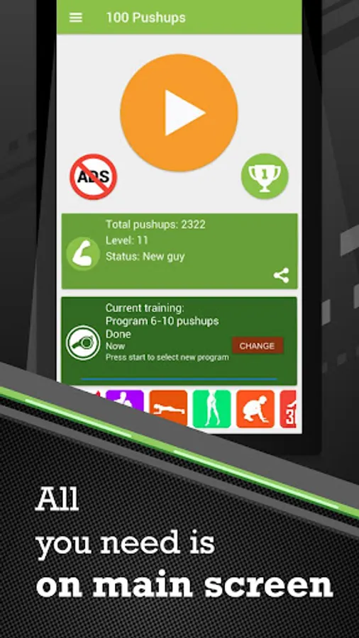 Do not be lazy, exercise and be healthy! The application 100 push-ups includes next functionality (features):