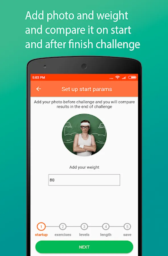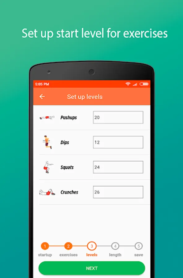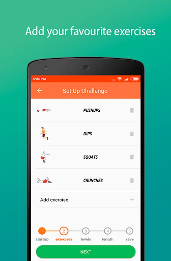 💪You can check exercises you want and set up challenge from 3 to 100 days.