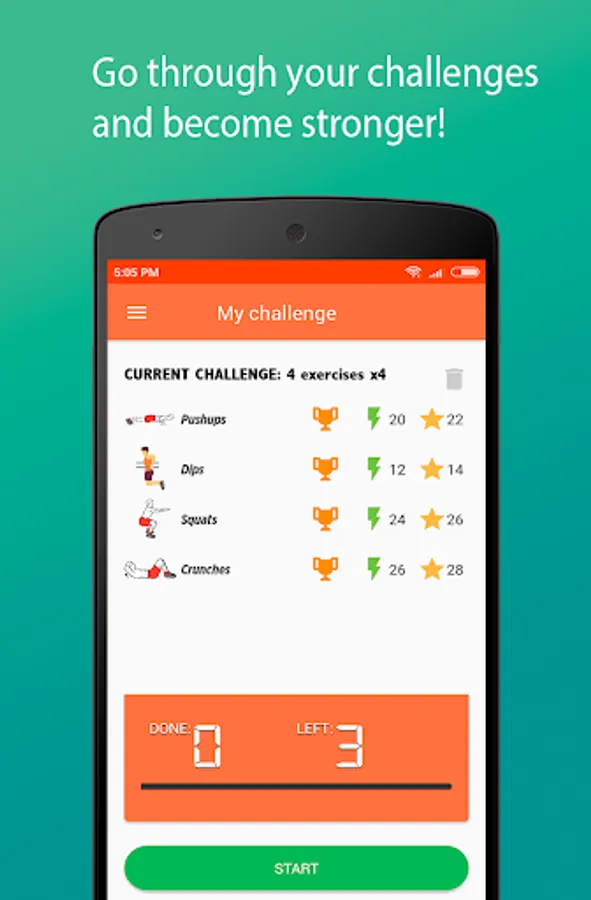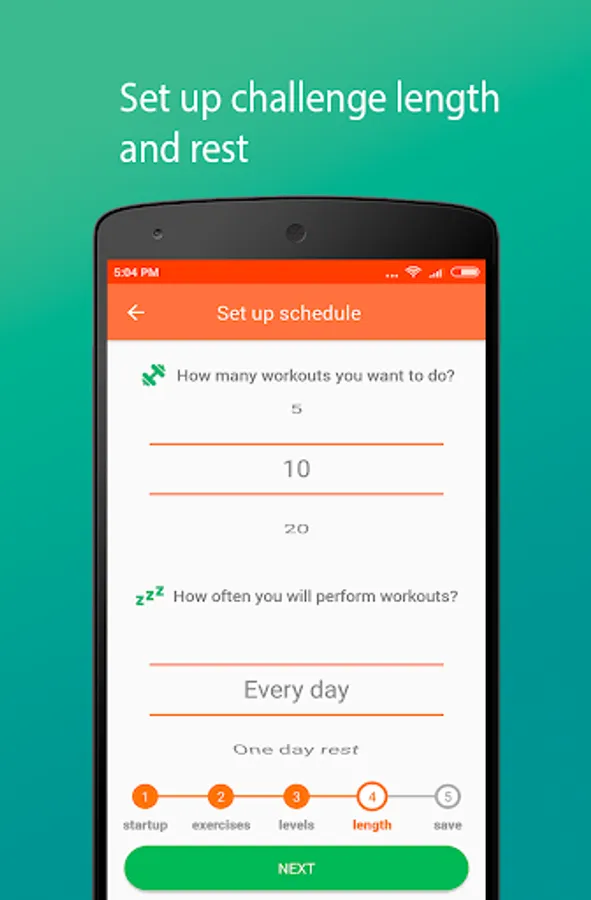 It is simple like 1-2-3. Just set up your workout, set up length of challenge and try to complete it.