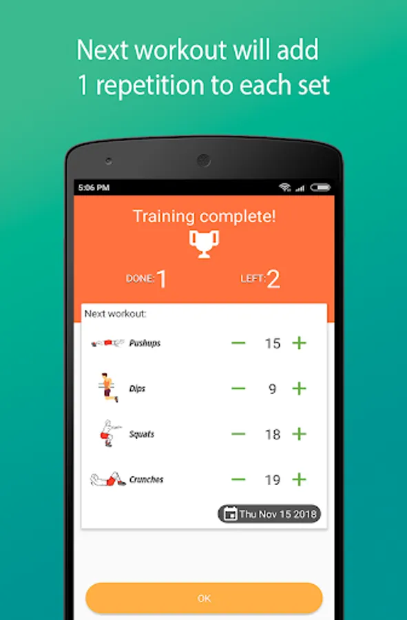 💪 In each workout your level sill increase by 1 in each set, so in the end of challenge you will increase your strength in few times