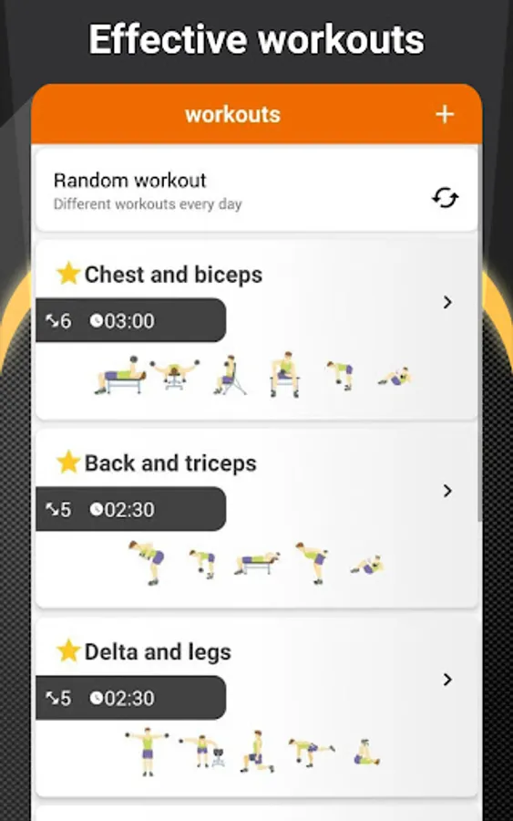 💪 Access special workout routines for full body workouts and specific muscle groups - legs, back, arms, shoulders, chest