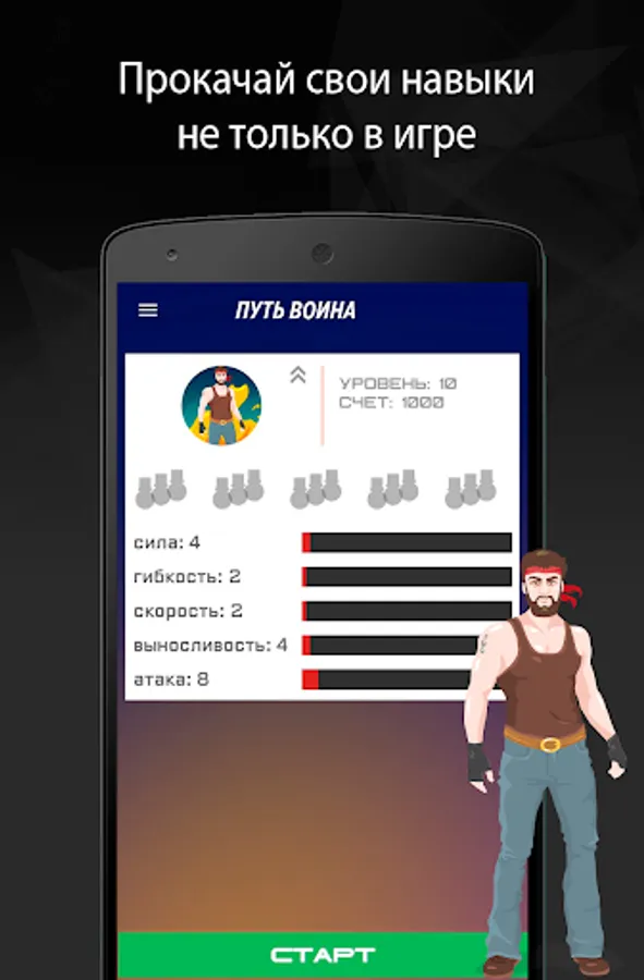 Warrior's Path 2 is a training program in game format. A variety of workouts are suitable for use at home and do not require additional equipment.