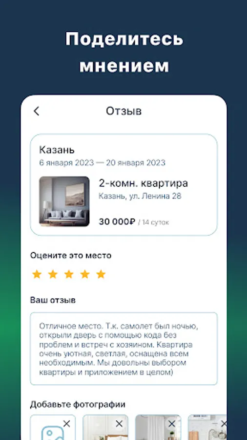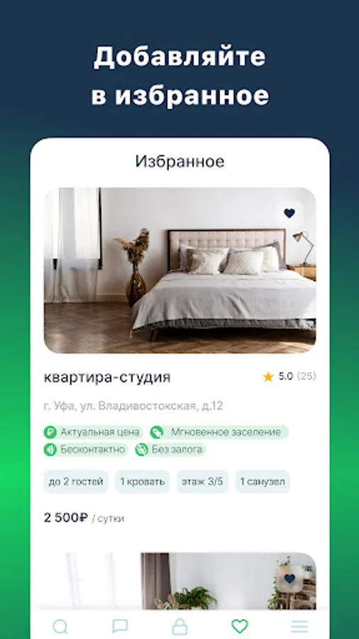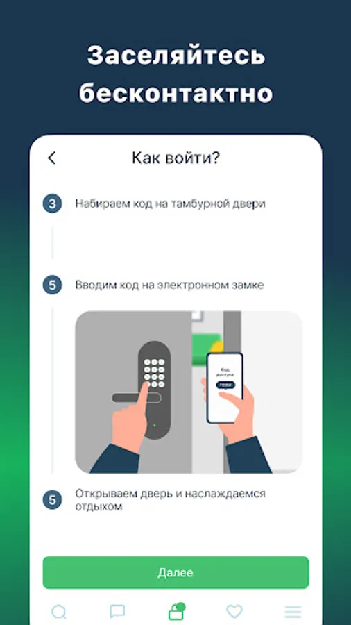 Book accommodation and pay rent remotely. You do not need to meet with the owner, go somewhere and sign an agreement: this can be done right in the application. After booking, verification and payment, you will receive an access code with which you can enter the rented apartment.