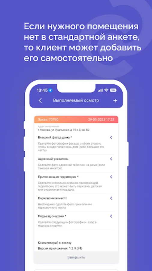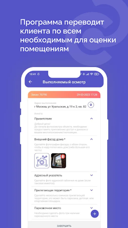 A handy application for inspecting real estate objects with step-by-step tips with protection against photo spoofing. The service speeds up and simplifies the process of preparing an appraisal report for a bank.