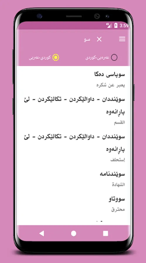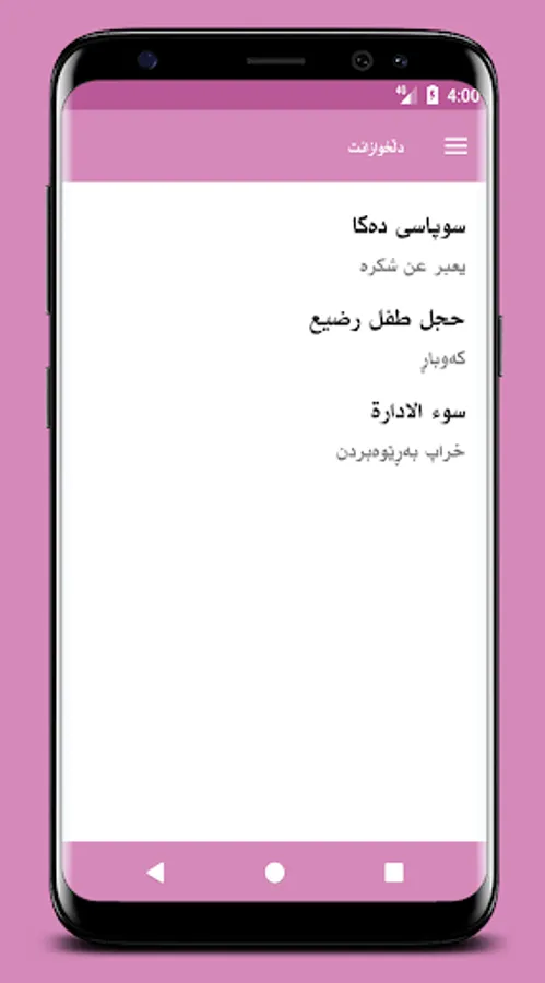 زۆر سوباس بۆ خوای گەورە گە توانیم بەسەركەوتوی ئەم فەرهەنگە تەواوبكەم , سەرەتا دەمەوێت ئاماژە بەوە بكەم كە ئەم فەرهەنگەی لە بەر دەستت دایە چەندەها شەونخونیم بۆ كردووە تا تەواوم كردووە ئەمەش تەنها بۆ بەرەو پێش بردنی زمانی كوردیە و ئامانجم سود گەیاندنە بە ئێوەی خوێنەرو ئاشقی زمان,من وەك گەشە پێدەرێكی بەرنامەی مۆبایل هەوڵدەدەم زۆرترین دیزاین بۆ بەرهەمی كوردی بكەم تا ئێمەش وەك كورد لە ڕوی تەكنەلۆژیاوە ئەگەر لە لە پێشیش نەبین ,دوانەكەوین,ئەم كارەشم تەنها بۆ سودە بە تاكی كورد بەخۆڕِای , تەنها ئەوەی داوای دەكەم لە ئێوە كە دوعای خێرم بۆ بكەن .