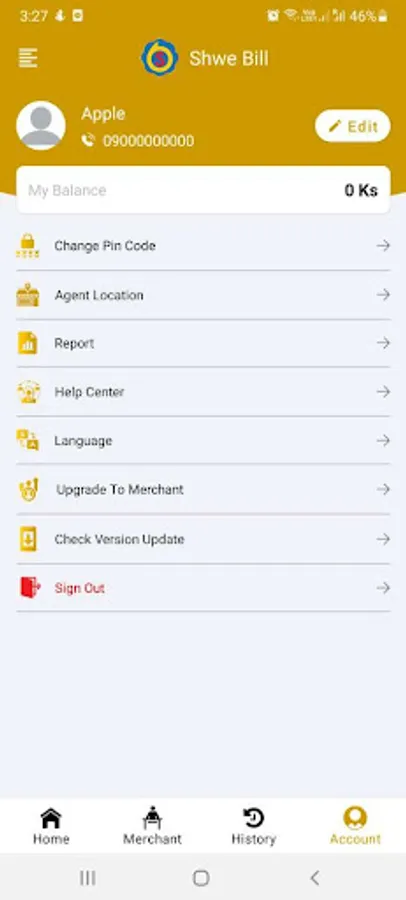 Shwe Bill Merchant app can purchase mobile recharge, SkyNet bill payment, Ananda, MyanmarNet, LALAKYI, etc.