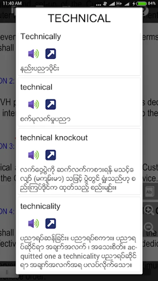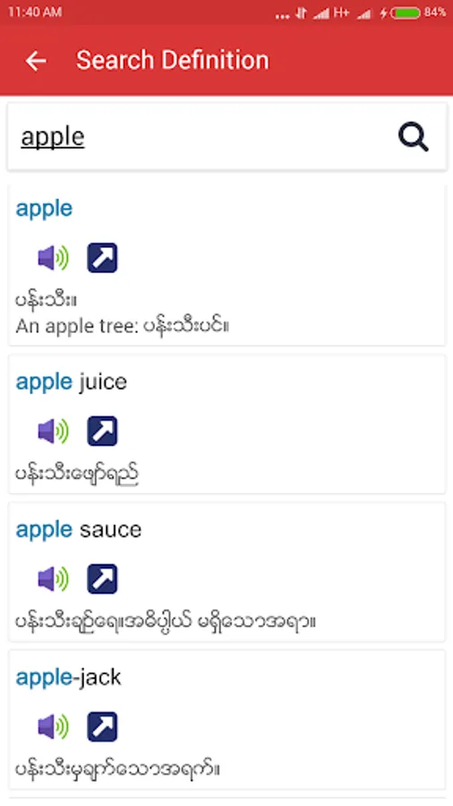 Just long pressed on English definition and Shwebook Reader will automatically translate into the definition of Myanmar.