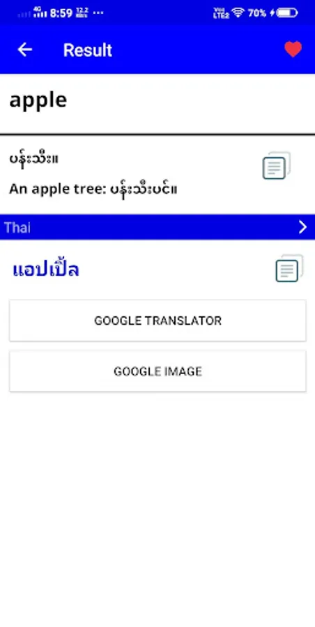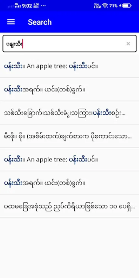★ Search English word -> Myanmar -> Thai definition