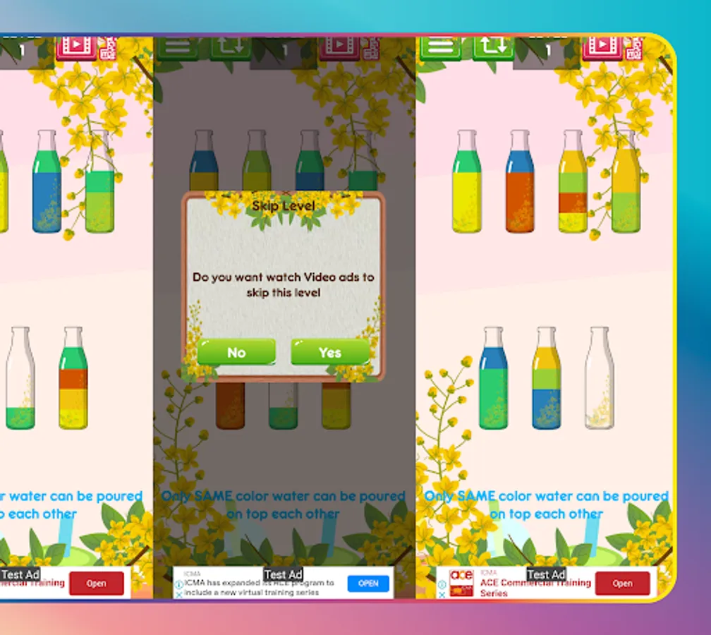 • Color Waterfest contains ads like banner, interstitial, video and house ads and it's free to play.