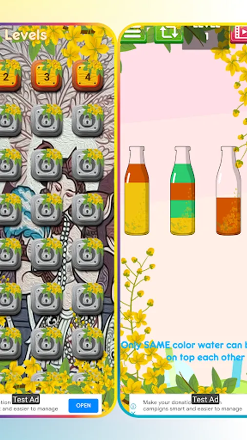 Water Festival Decoration to refresh your mind and soul for your maximum relaxation while sorting the Color Water Puzzle into respective bottles.