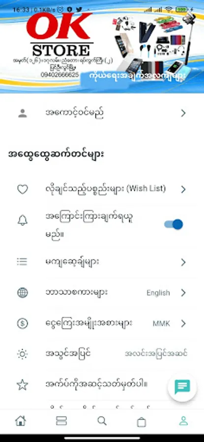 Facebook Link: https://www.facebook.com/okstorepyinoolwin