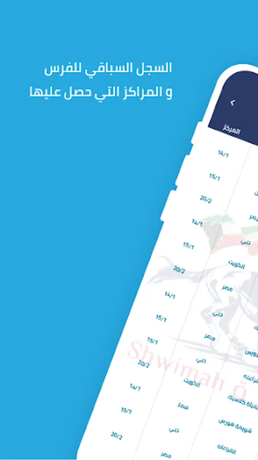 Shwimah Racing is an application for records and displays the Arabian horse races results in the state of Kuwait