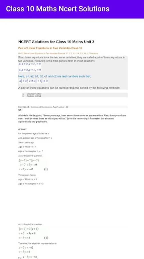 Chapter 3 : Pair of Linear Equations in Two Variables