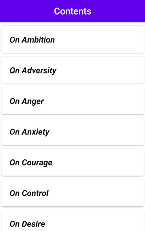 Just tap your topic and get the stoic lines to look at life in a new way.