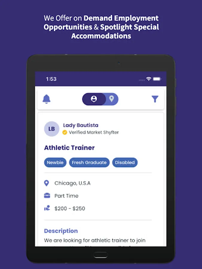 We recognize that finding the right job can be overwhelming and time-consuming. MyShyfts is here to simplify your job search and help you discover exciting opportunities that align with your skills and aspirations. Our app offers a user-friendly interface where you can create a detailed profile, browse through a wide range of job listings, and directly connect with employers who are actively hiring. Whether you're a seasoned professional or just starting your career journey, MyShyfts empowers you to take control of your job search and find the perfect match.
