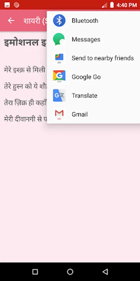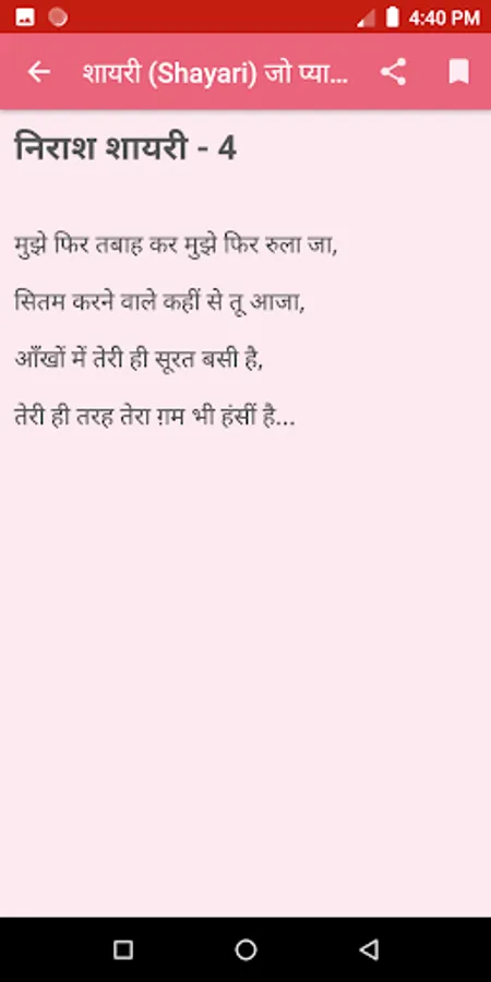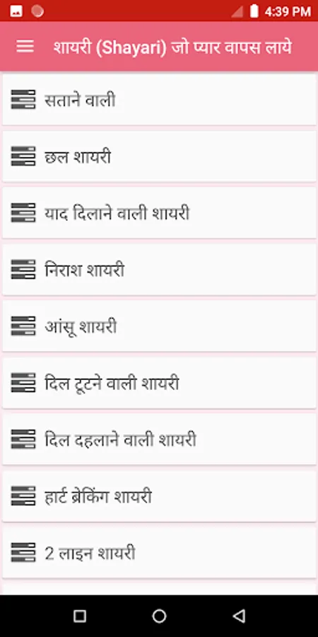 This app has huge, Unique and latest collection of "Hindi Shayari"