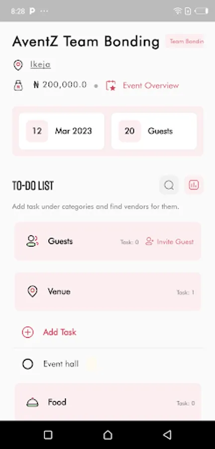 AventZ App for users and vendors. This app provides the platform for individuals to create and manage their events from A - Z. Users have access to various vendors to meet all their events need at their own convenience. Features such as Events management, Task management, Vendors Hiring, Task tracking and Guest invites are available in this version. Do have a blissful and eventful year. AventZ got you covered!