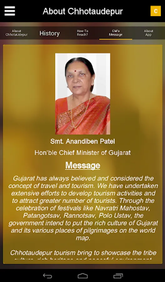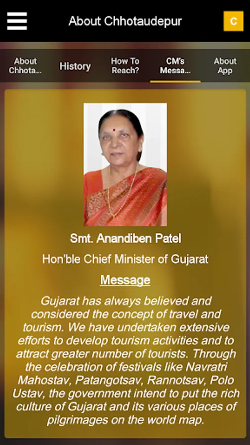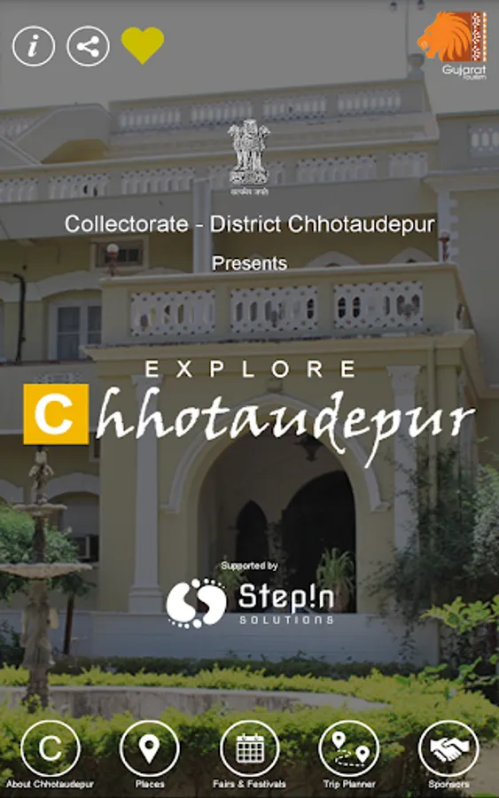 The Collectorate of Chhotaudepur proudly presents the Chhotaudepur Tourism app for the visitors and local people of Chhotaudepur . This app covers exclusive information about Chhotaudepur places and surrounded routes nearby Chhotaudepur city. With tourism friendly pictorial representation of places with navigation on map, this app helps you to make your journey comfortable and enjoyable.