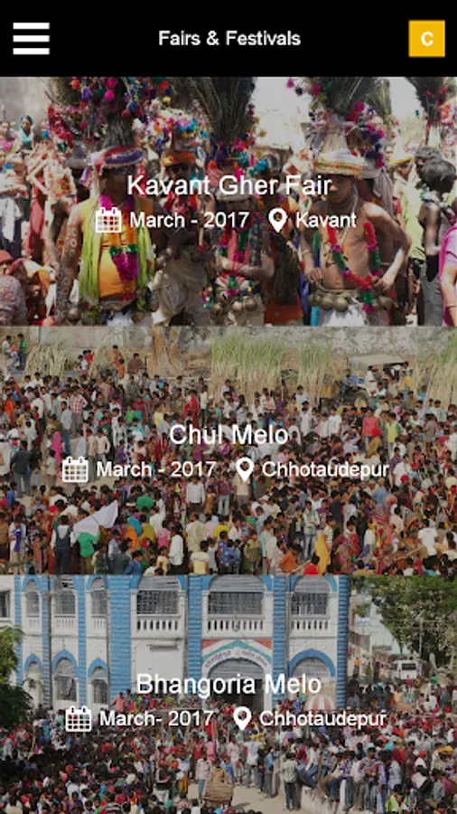 4. Includes Fairs & Festivals with Date, Images and direction from your location to place location that
