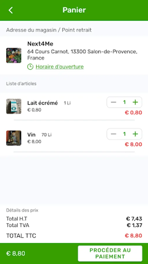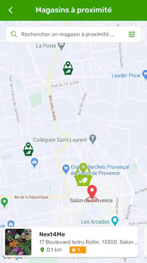 - Le client peut quant à lui choisir sa localisation ou active la géolocalisation de son téléphone pour naviguer et sélectionner les boutiques les plus proches de sa position, puis passer commande auprès du marchand, qui préparera la commande pour qu’elle soit retirée sur place.