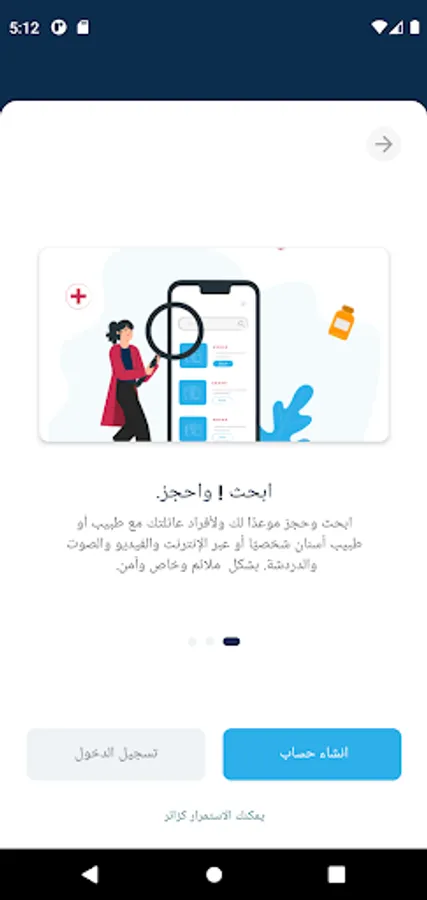 ابحث عن اخصائيين صحيين مؤهلين و احجز المواعيد بسهولة عبر الإنترنت لك ولأفراد عائلتك. شخصيا، أوطلب آمن للصحة عن بعد، فهو مناسب وخاص وآمن