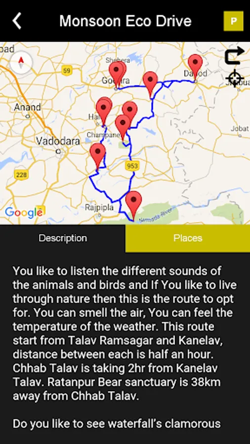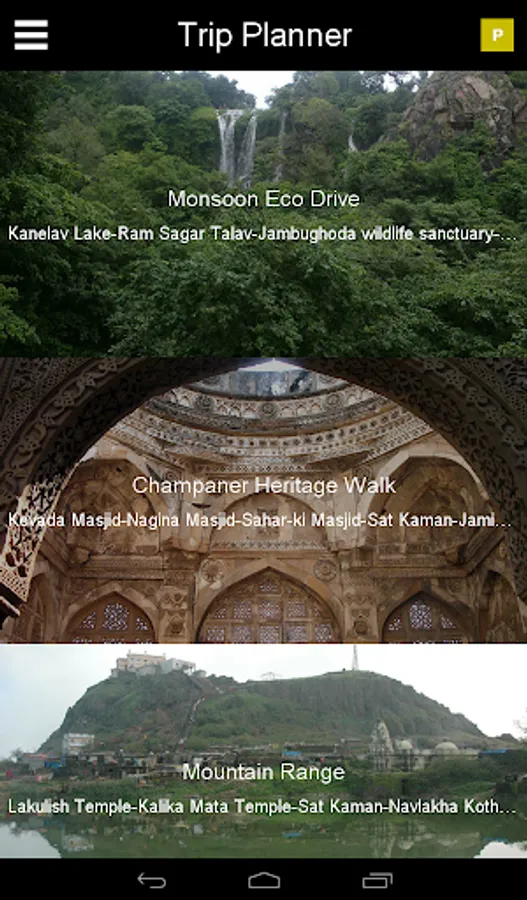 With this app, we are sure that you will be able to make your journey to Panchmahal, Champaner & Pavagadh a memorable experience of your life. There are too many peaceful and artistic places there in panchmahal like lakhulish temple, ek-minar-ki masjid, shahar ki masjid, jami masjid, nagina masjid, jain temples, kevada masjid, sat kaman etc. A leading world organization Unesco gave the Champaner-Pavagadh Site a special status of "World Heritage" in June-2004 and named it as Champaner-Pavagadh Archeiological Park. Following are few major features which are going to be useful during your journey.