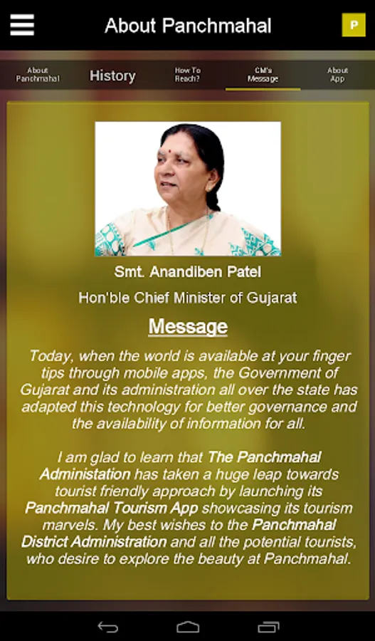 The Collectorate of Panchmahal proudly presents the Panchmahal Tourism app for the visitors and local people of Panchmahal. This app covers exclusive information about famous tourist destinations in district such as Pavagadh and Champaner Heritage Park and also near by interesting tourism spots surrounding Godhra and other Talukas.