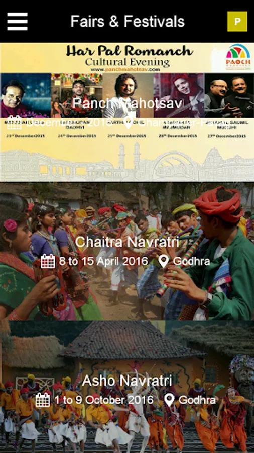 4. Includes Fairs & Festivals with date, Images and direction from your location to place location that connecting culture of Panchmahal.