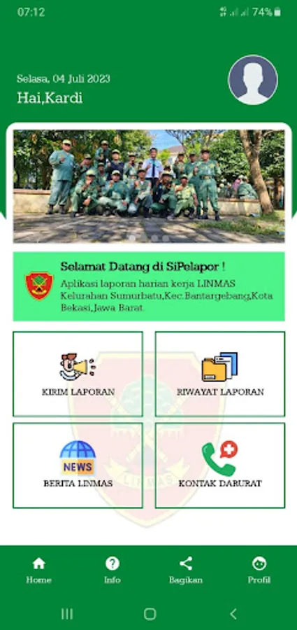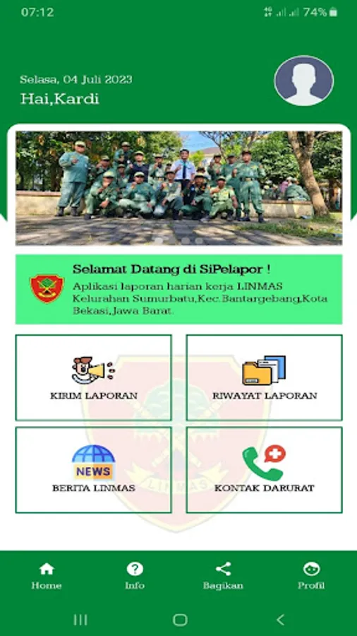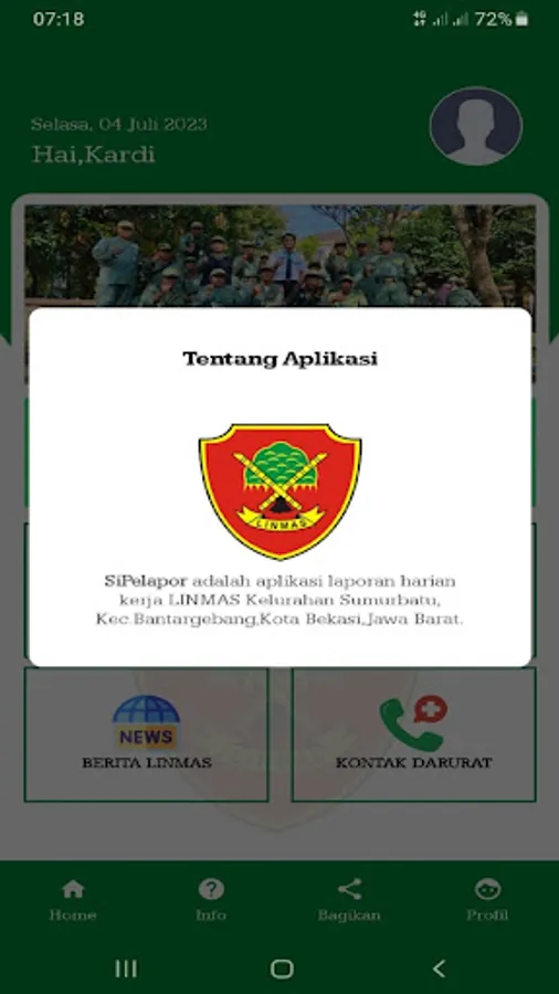 Aplikasi untuk pelaporan harian kerja LINMAS Kelurahan Sumurbatu,Kec.Bantargebang,Kota Bekasi,Jawa Barat.