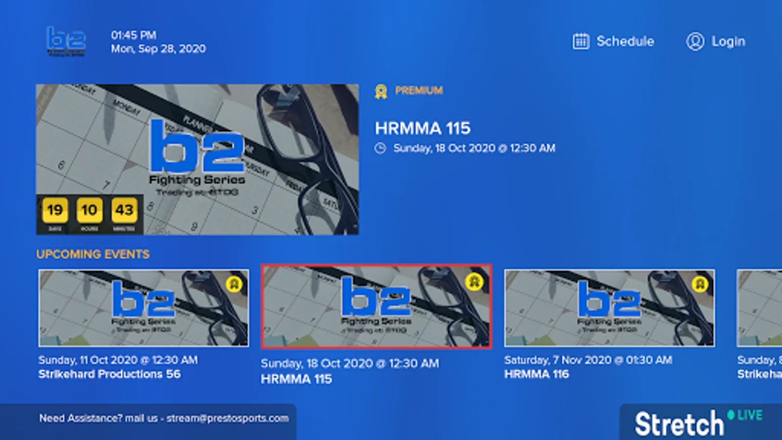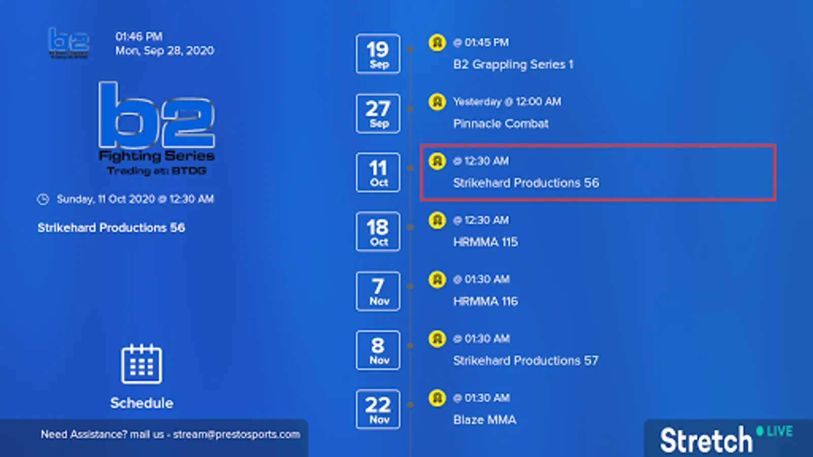 Live and on-demand broadcasts for the B2 Fighting Series.