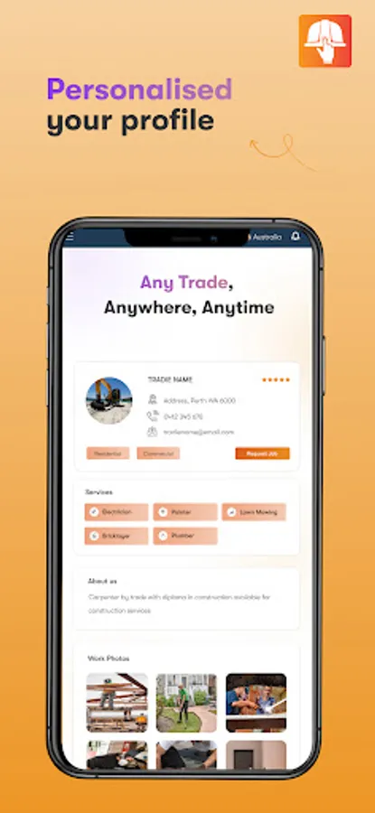Build a reputable profile as a Tradie by adding photos, bio, specialties, work history, portfolio, and more. Complete jobs with the utmost professionalism and on time to earn five-star ratings. A good work profile with lots of positive feedback increases your chances to get hired when you apply for job requests.
