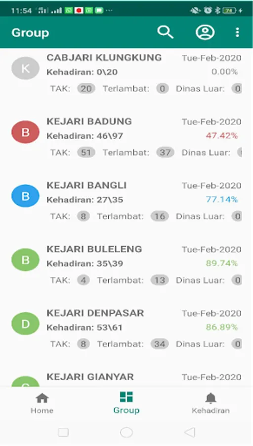 Absensi Online Real Time Kejaksaan Tinggi Bali Bidang Pengawasan.. Mencakup Semua Kejaksaan Negeri Bali