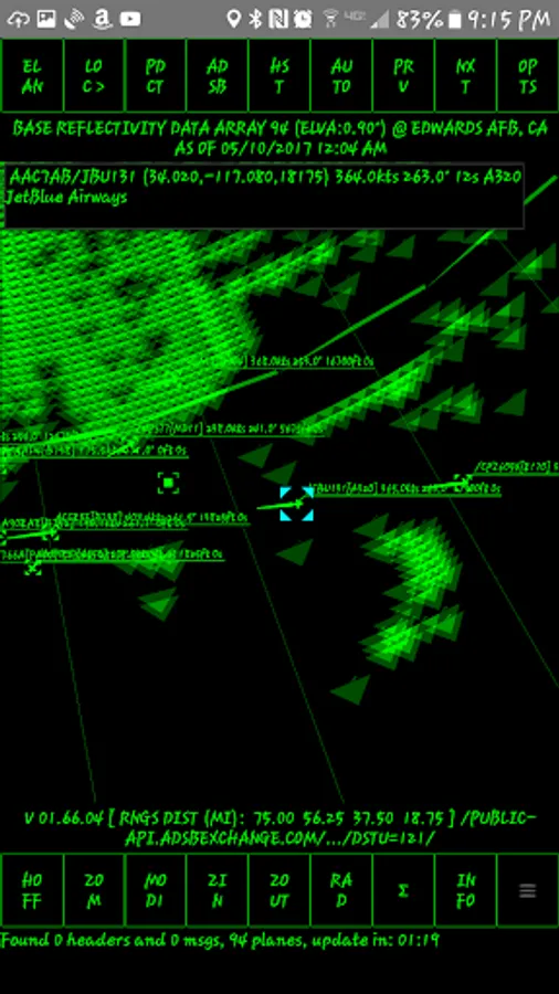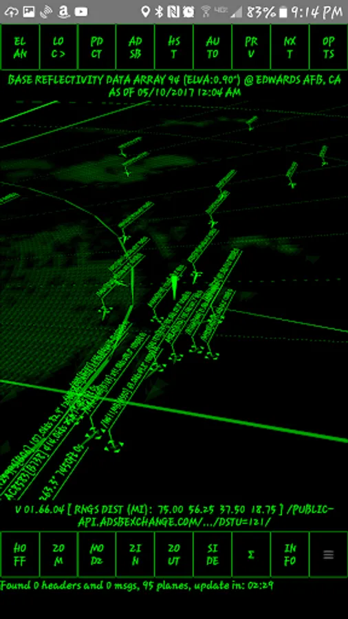 It *will* display raw radar data from NOAA on an "old-style" radar screen with the rotating ray highlighting echos as it goes by. It will display ADS-B data for airplanes above.