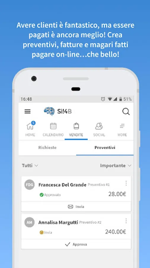 Yes! 4Business is a real "pocket office", it helps you manage and synchronize your contacts and your customers, it gives you the possibility to carry out cross-platform marketing actions and allows you to manage in real time bookings, estimates and appointments ... travel light with Yes! 4Business!