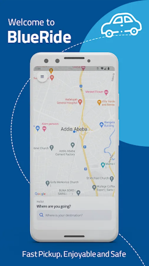 Blue Ride application offers the easiest & fastest way to book a ride. On-demand ride hailing services with taxis in the major cities Across Ethiopia and with Taxi, and with all kinds of City Transportation vehicles in the outskirts of the cities. Blue Ride application is an easy to use and convenient ride booking app.