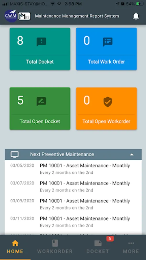 Maintenance Management Report System for CAAM