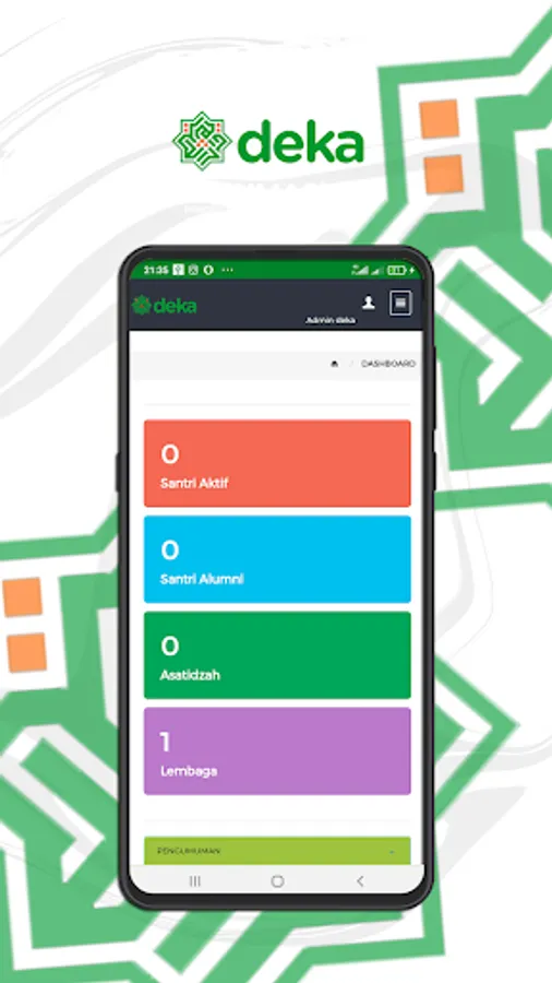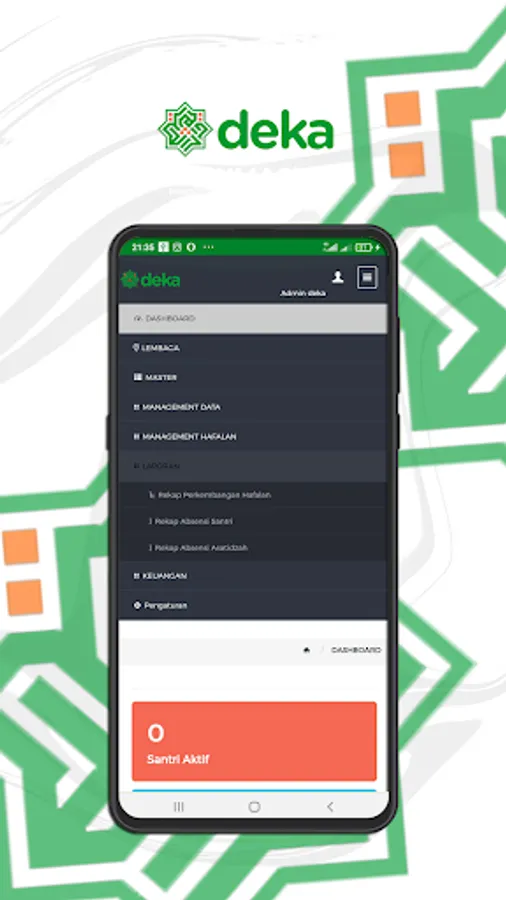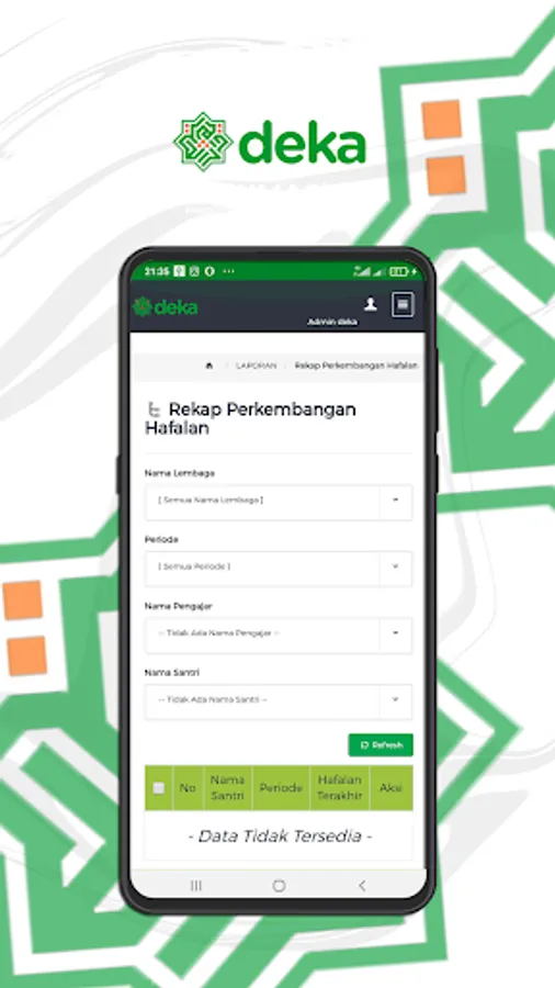 SIAKAD DEKA is a digital platform for various programs of the Daar el-Khairiyyah Indonesia Foundation. We present this platform in order to make it easier for guardians of students, donors, and foundation management in accessing data on the development of students' memorization quickly and accurately.