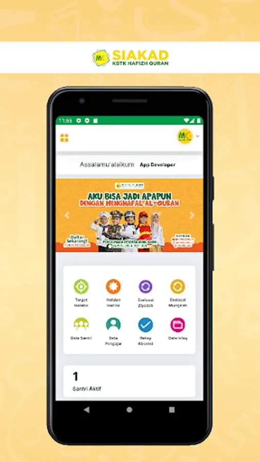 Siakad KBTK Muhajirin Center is a digital platform for the Tahfidz Muhajirin Center School. We present this platform in order to make it easy for guardians of students, donors, and foundation administrators to access data on the development of students' memorization quickly and accurately.