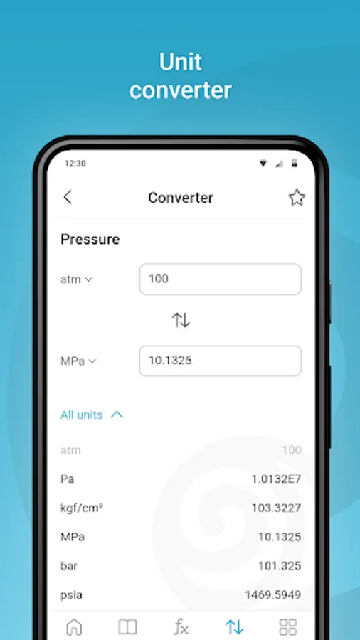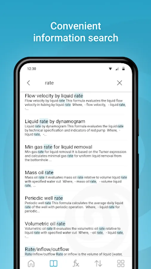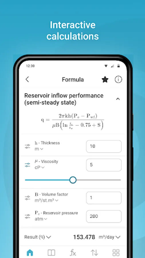 1. The "Formulas" is an interactive tool for calculating parameters for fifty different equations from 6 categories. The application allows calculating any parameter from the formula due to the built-in numerical optimization algorithms.