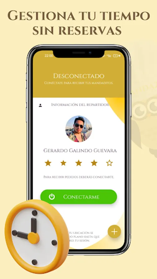 Choose your days and hours as a delivery person according to your availability. To "connect" you do not need to book in advance, be free of your time, just remember that the longer you stay "connected" the greater the earnings.